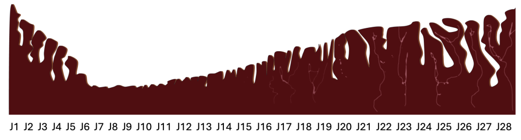 Après l’ovulation, l’hormone progestérone, produite par ce qu’on appelle le corps jaune (la structure laissée par l’ovule dans l’ovaire), agit sur l’endomètre. Les glandes deviennent plus complexes et commencent à produire du glycogène, une forme de sucre qui servira de réserve d’énergie si une grossesse commence.